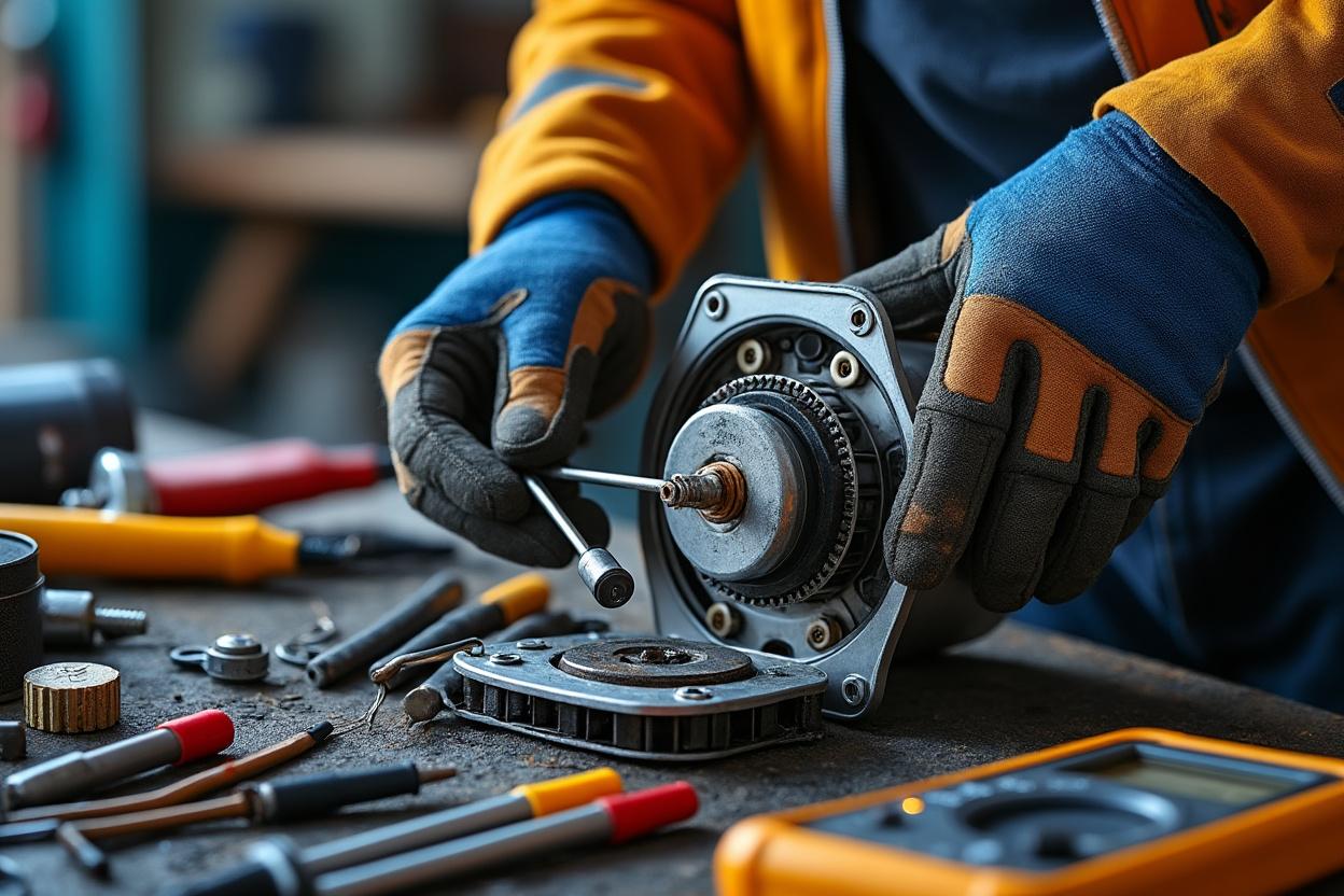 La surchauffe, due à un effort prolongé ou à un environnement chaud, dégrade les enroulements et les isolations. De même, l’usure normale des pignons et des axes finit par affecter les performances.